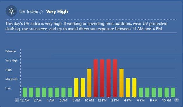 پیش بینی پایگاه داده هواشناسی MSN از تابش فرابنفش روز شنبه یک اعلام خطر جدی برای سلامت ایرانیان است.