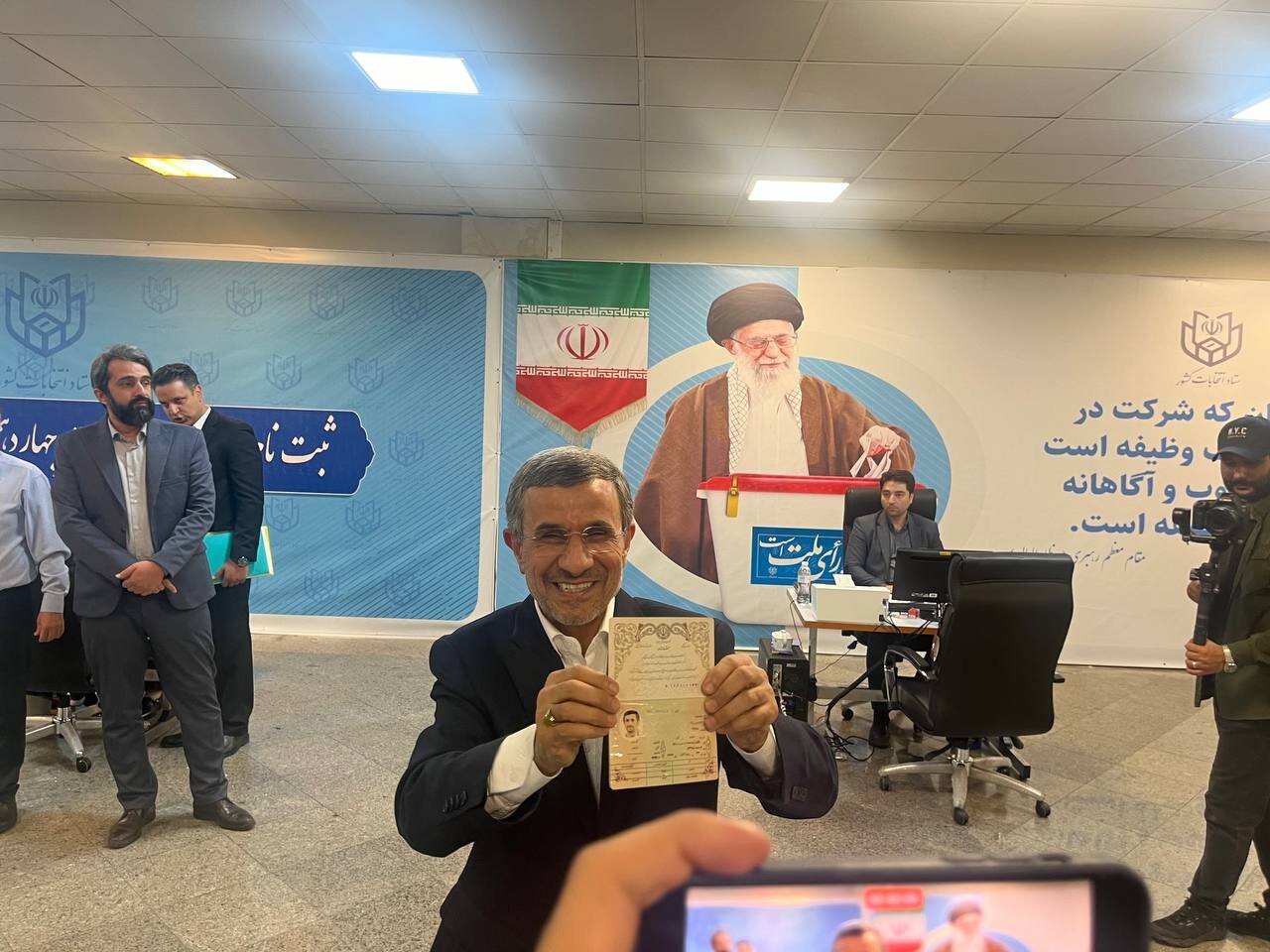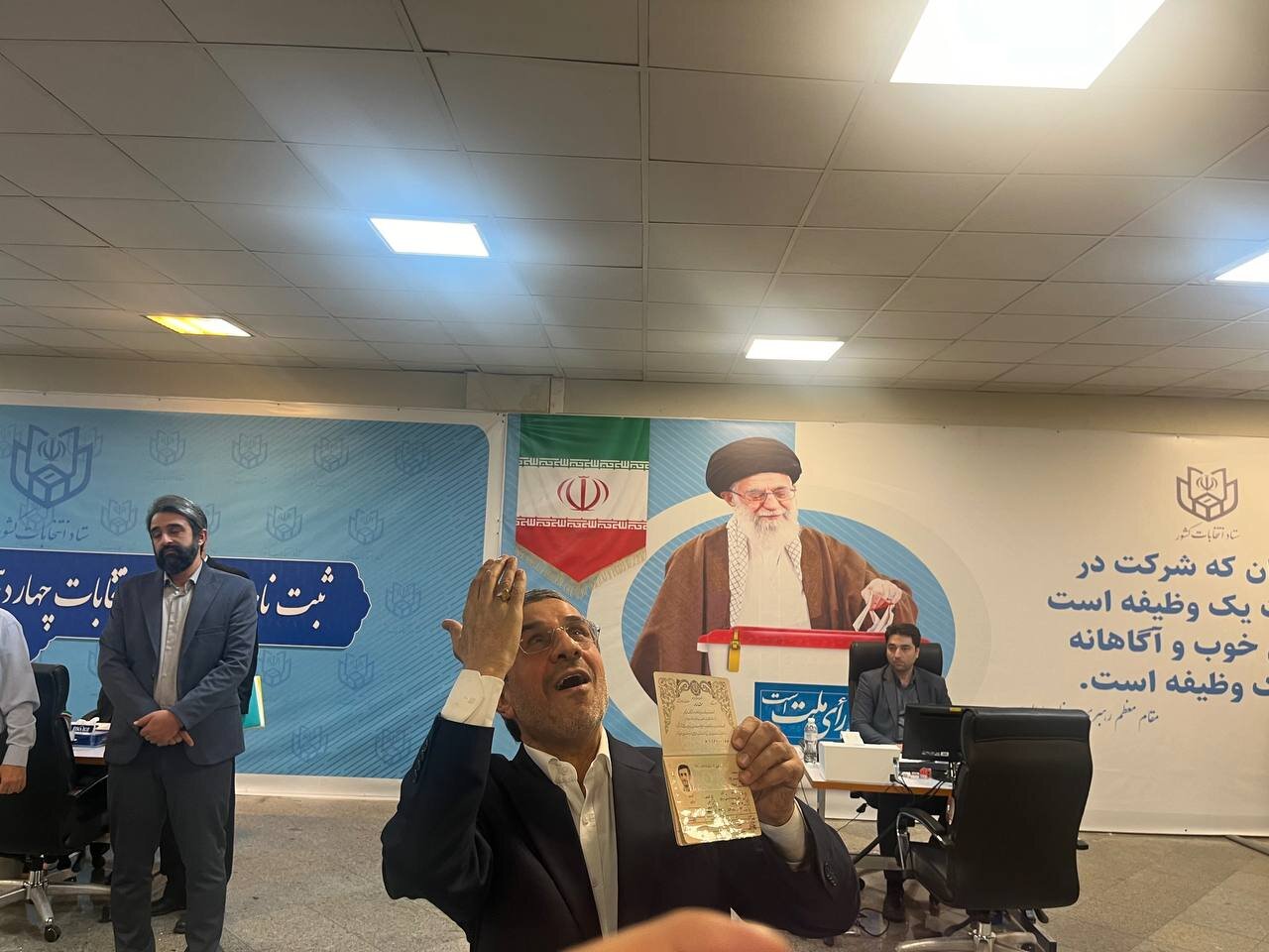 به گزارش 24 آنلاین، محمود احمدی نژاد رئیس دولت های نهم و دهم، جهت ثبت نام در انتخابات ریاست جمهوری وارد ستاد انتخابات شد و نام خود را به عنوان یک کاندیدا در چهاردهمین دوره انتخابات به ثبت رساند.