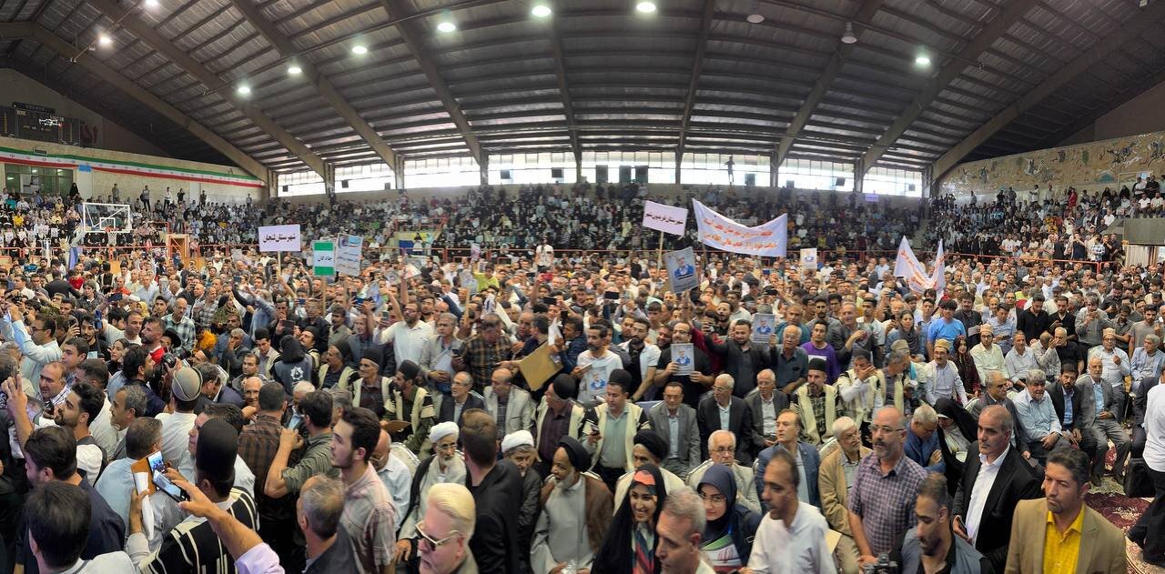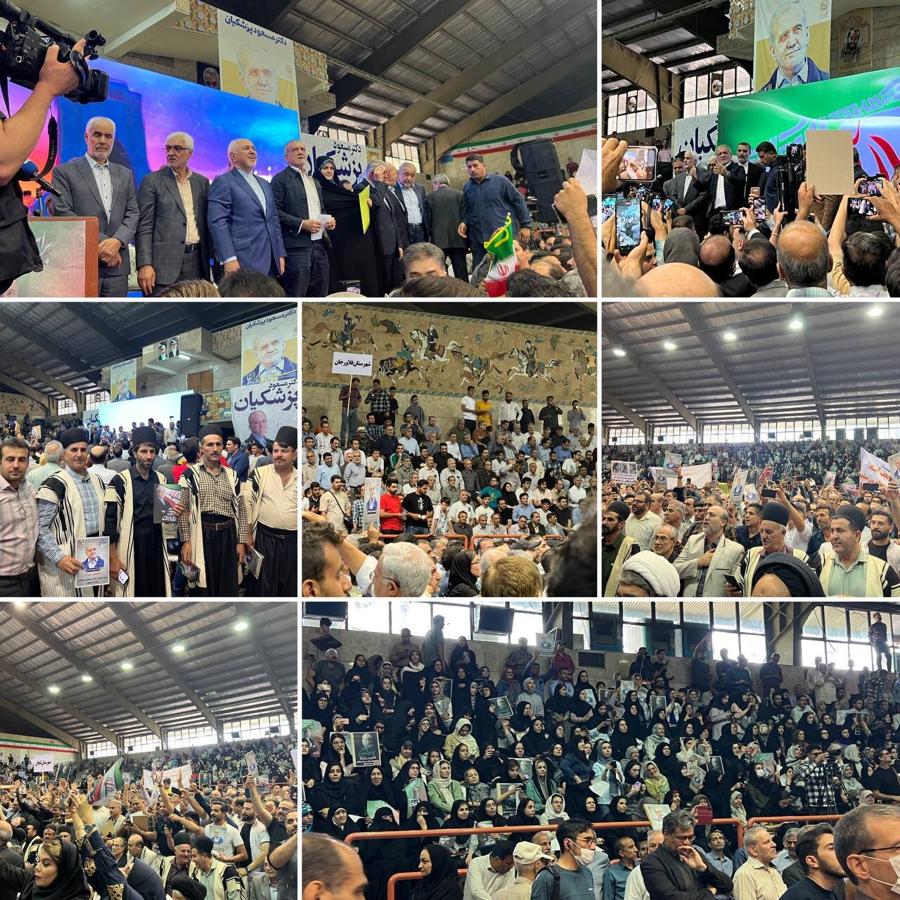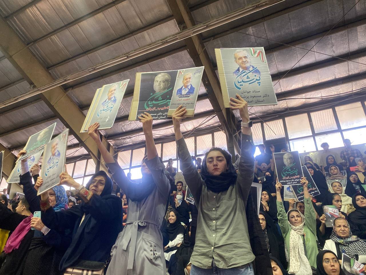 از سوی دیگر، برخی از کسانی که میتینگ تبلیغاتی مسعود پزشکیان در اصفهان آمده بودند، پلاکاردهایی از شهدای خدمت؛ ابراهیم رئیسی و حسین امیرعبدالللهیان را در دست داشتند.