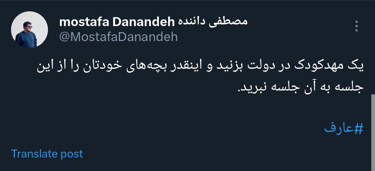 مصطفی داننده، خبرنگار، از دیگر منتقدان حضور عارف در مراسم تودیع وزیر صمت بود. او نیز در شبکه اجتماعی ایکس با هشتگ عارف نوشت: «یک مهد کودک در دولت بزنید و اینقدر بچههای خودتان را از این جلسه به آن جلسه نبرید.»